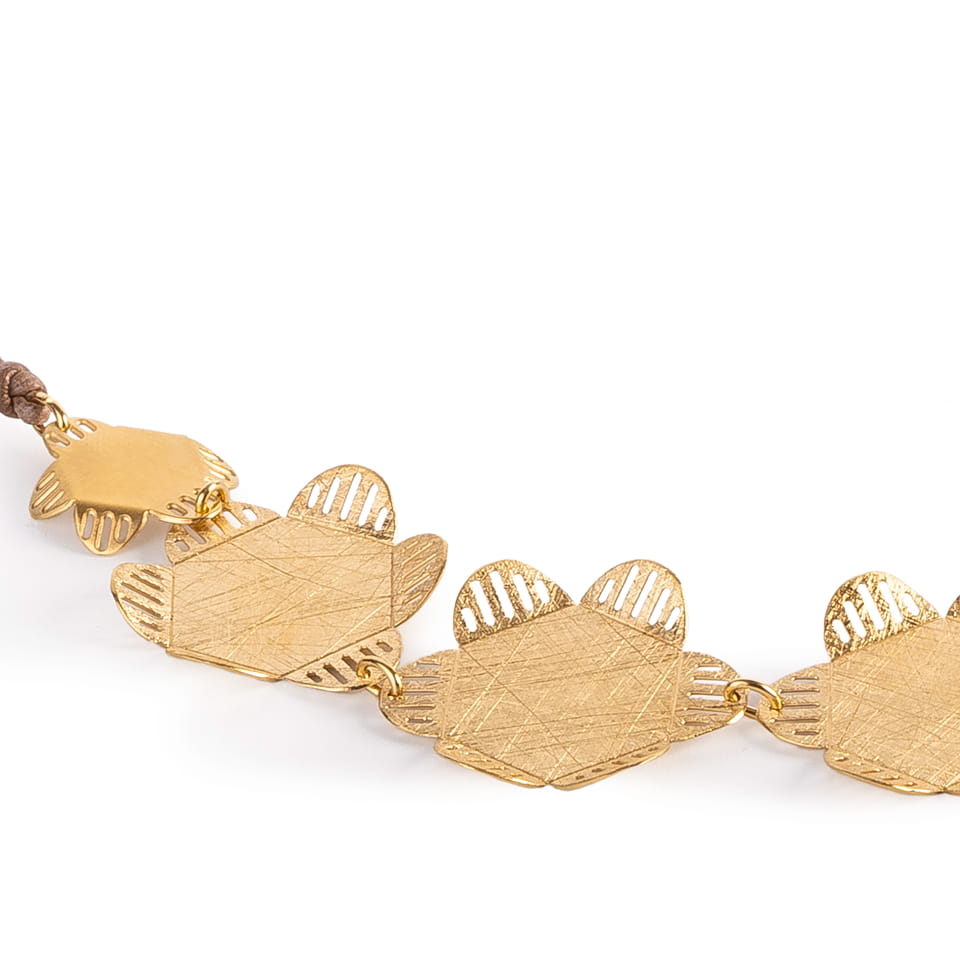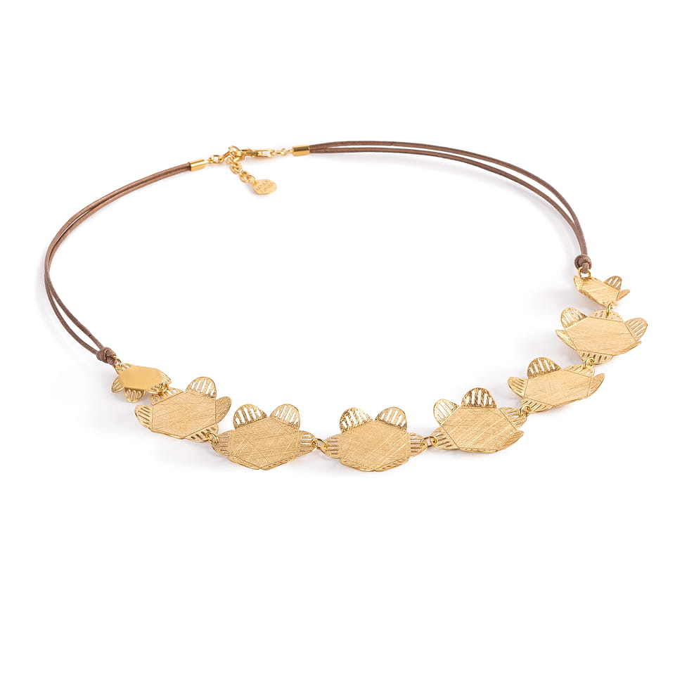Necklace. Several pieces strung together on a cord. A design inspired by nature and flowers.