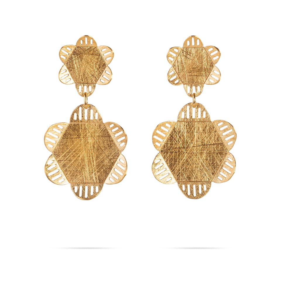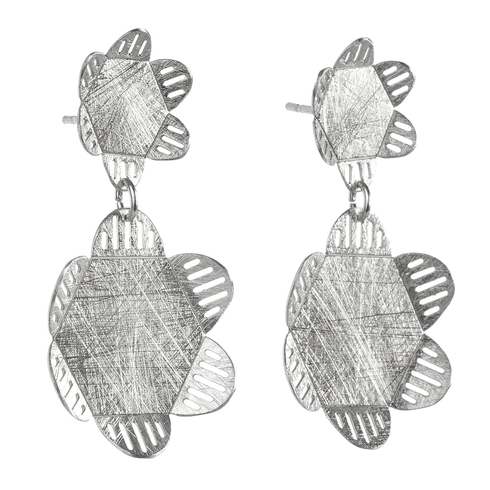 Pendientes largos articulados. Dos piezas unidas. Diseño inspirado en la naturaleza y las flores.
