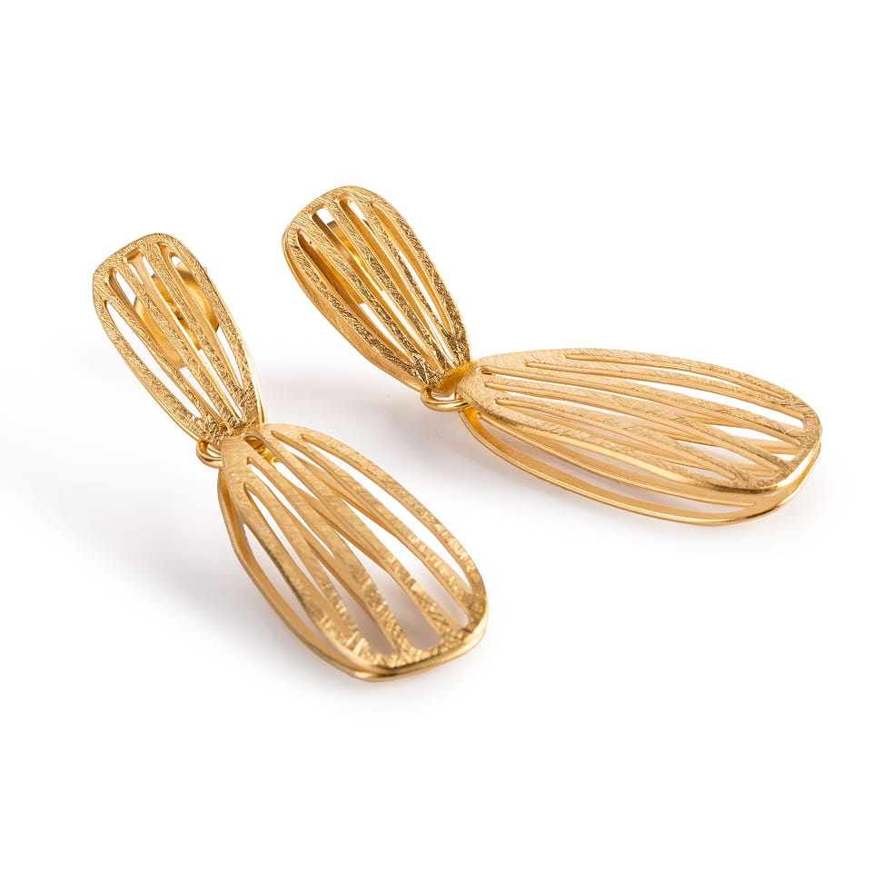 Pendientes con dos piezas unidas. Diseño inspirado en la naturaleza y las flores.