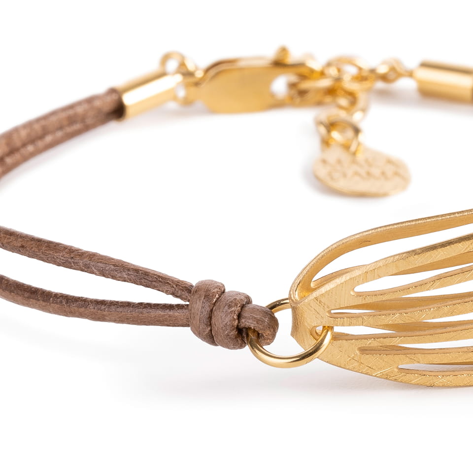 Pulsera una pieza unida con cuerda. Diseño inspirado en la naturaleza y las flores.